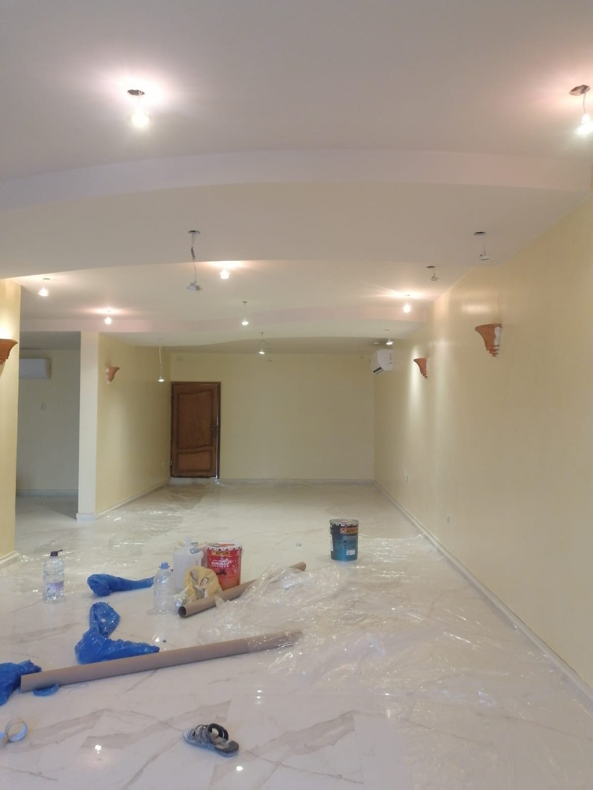 تنفيذ أسقف جبس مستوية ومعلقة مع مستويات متعددة وحواف Shadow Line، دهان نهائي احترافي وخطوط دقيقة، فتحات سبوتات وبروفايلات LED.